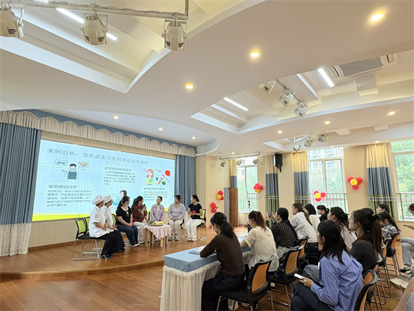 “如何平衡幼儿饮食的营养与口感?”在食品安全主题沙龙中,食品安全总监周仁莉、食堂管理员韩媛媛结合日常工作流程与厨师代表、部分家长代围绕幼儿园食品安全方面用沙龙的方式进行了详细的讲解。大家针对食品安全管理中的重点难点问题交换思路、分享妙招,沙龙氛围轻松热烈,园长们不时交流讨论,围绕食品安全管理中的重点难点展开深入探讨。