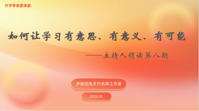 合肥市双岗幼儿园教育集团:追寻教育之光 开启开学新章2025年8月31日,合肥市庐阳区陈天竹名师工作室开展“追寻教育之光 开启开学新章——主持人领读第八期”主题活动,全体成员云端相聚,共同学习教育类公众号优秀文章,探索开学季所面临的教育难题,为工作室成员在新学期工作中带来新理念。