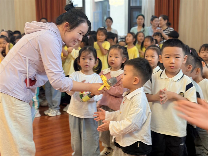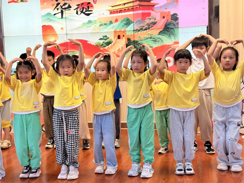升旗仪式后,师幼共同唱响园歌,欢快的旋律回荡在幼儿园的每个角落 。随后,大一班幼儿带来了精心准备的节目表演,孩子们用灵动的舞姿、响亮的歌声,表达对祖国妈妈的美好祝福 ,赢得了在场师幼的阵阵掌声。