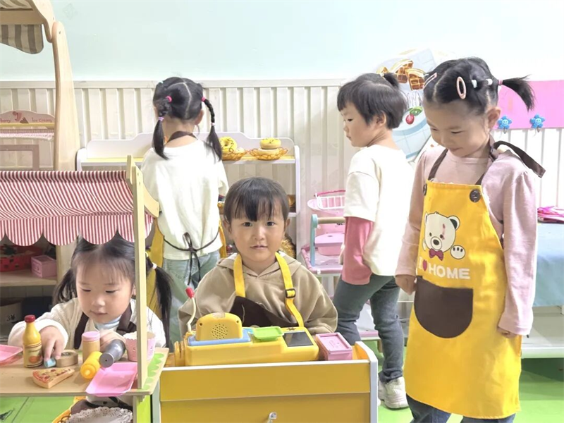 幼儿园里变成了欢乐的游戏天地,各类趣味游戏轮番登场。在角色游戏区,萌宝们化身“小厨师”、“售货员”,在互动中学会沟通合作;建构区里,大家齐心协力搭建“小房子”、“家”,体验创造的快乐。丰富多样的游戏让孩子们乐此不疲,渐渐喜欢上幼儿园这个充满乐趣的“小乐园”。