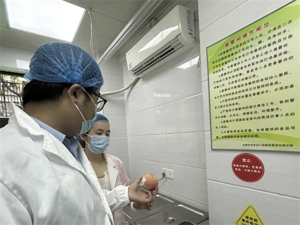 食品安全 为进一步做好新学期幼儿园食品安全工作,切实保障幼儿园食品安全,严控食品安全关,筑牢校园食品安全防线,2025年9月9日上午,合肥市庐阳区林店市场监督管理所工作人员到合肥市双岗幼儿园教育集团悦城分园进行了2025年秋季学期食堂食品安全专项检查工作。检查人员深入幼儿园食堂,对仓库、粗加工间、洗消间、烹饪间、备餐间等场所的硬件设施和卫生情况进行了详细的检查,询问了幼儿园食品采购、仓储保管、规范操作等流程。检查人员对我园食品安全工作给予了肯定,希望园所继续做好食品安全工作,确保师幼舌尖上的安全。