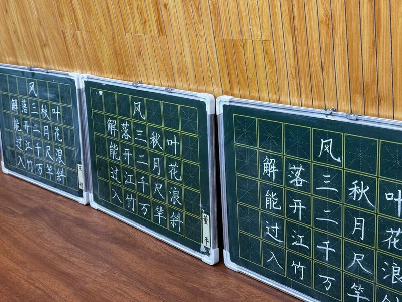 比赛中,参赛教师们全神贯注,挥毫泼墨,展现了扎实独特的艺术风格。硬笔书法作品工整流畅,黑板字作品则气势恢宏,充分体现了教师们在教学岗位上的练兵成果。评委们从字体规范性、书写美观度、整体创意等方面对作品进行了细致的评比,最终评选出了一批优秀作品。