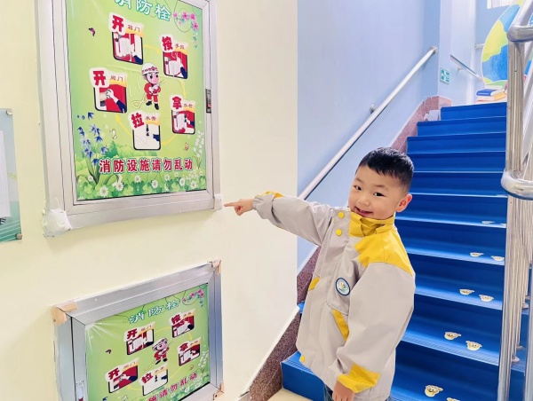 中班的幼儿则将学习焦点投向了身边的消防安全标识。他们认识了“安全出口”“禁止吸烟”“火警电话119”等常见标志,并能准确地将标识与含义对应起来。 随后,孩子们在老师的带领下,化身“安全小侦探”,兴奋地在教室、走廊、大厅等幼儿园的各个角落寻找消防标识、消防栓和灭火器,在实践中加深了对安全设施位置的了解。