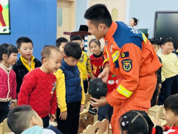 大班则开设了别开生面的“消防知识小课堂”。我们邀请了大二班的家长走进课堂,凭借专业的知识和丰富的经验,详细阐述了火灾的危害、如何预防火灾以及报火警时需要说清的关键信息等安全知识。 紧接着,消防员叔叔详细向幼儿们介绍了每种装备的功能,并和小朋友们亲切互动,在亲身感受中了解了各项装备的作用和消防员叔叔工作的辛苦。