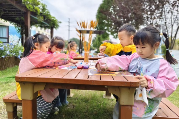 创作结束后,孩子们将画作铺满长桌,围成一圈互相欣赏、分享。“我画的是沉甸甸的麦穗,代表秋天丰收啦!”“我们画的麦田好大,风吹过来,麦浪都在跳舞呢!”孩子们脸上洋溢着满满的成就感与自豪感,兴奋地讲述着自己的创作想法。