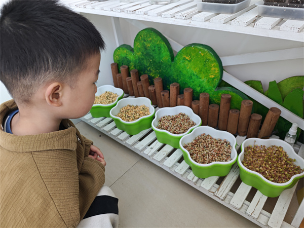 当孩子们渐渐把这里当成另一个家,我们的课程故事,也悄然在班级的自然角里,找到了新的主角。一天,孩子们认识了一些神奇的“种子”朋友,他们和“豆子先生”的美好相遇开始了……