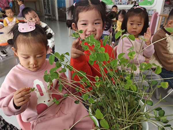 更珍贵的是情感的萌发。在日复一日的照料中,他们懂得了等待的意义,感受到了生命的奇妙与坚韧。当看到自己亲手照顾的豆子破土而出、茁壮成长时,那种责任感与成就感,化作眼中最闪亮的光。这棵小小的豆苗,不仅扎根在水里,更扎根在每个孩子的心田,“瞧!小二班是我们和豆子先生共同的家!” |