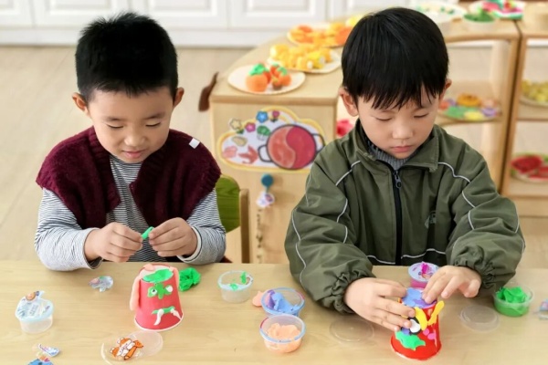 中班组:纸杯变变变 中班幼儿将平日里闲置的纸杯,在孩子们用黏土的装饰下,摇身变成了精致的小花盆、有趣的小动物玩偶。孩子们一边动手,一边分享自己的想法,在互动中体验创作的乐趣。