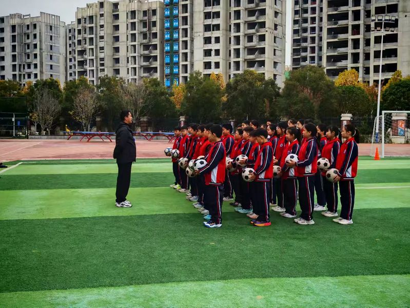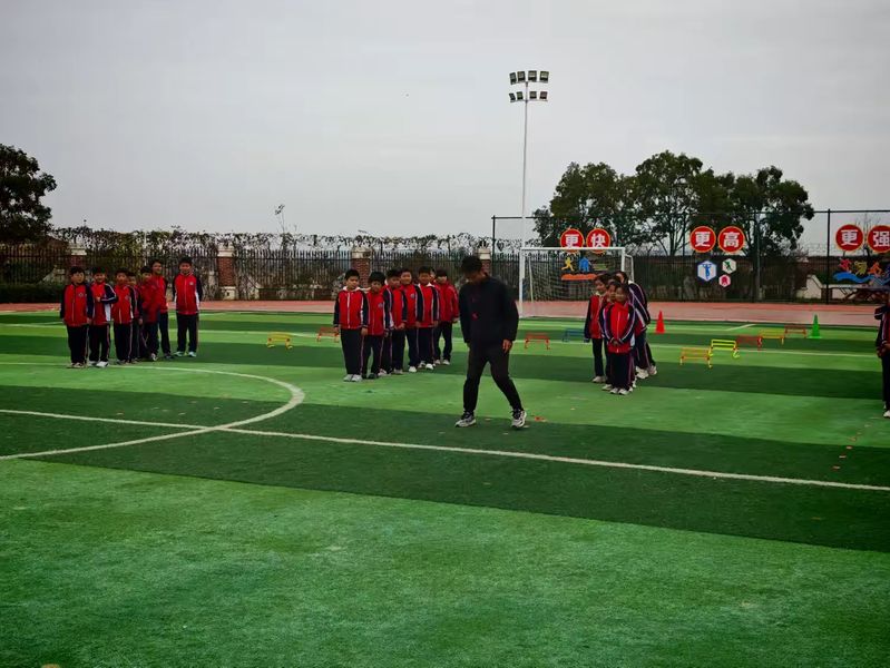第二节课由姜昂老师带来《足球—脚背正面踢球》,本课聚焦足球射门基础技能训练,重点教授脚背正面的踢球动作。教学采用分步示范法:先静态讲解动作要领(如支撑脚位置、摆腿路径),再组织分组练习(如对墙踢球、两人互传)。学生兴趣浓厚,多数能掌握基本动作,但部分学生出现踢球力度控制不佳或动作变形的问题。反思后,建议增加个性化辅导和游戏化练习(如射门比赛),以提高动作准确性和趣味性。课程有效培养了学生团队精神和运动技能。