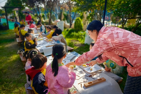 合肥市荣城幼儿园教育集团菱湖:开展“邂逅诗意的时光·秋天的树”点******色活动秋天到了,树叶换上了金黄、深红的衣服从枝头飘落。2025年11月13日,合肥市荣城幼儿园小一班的宝贝们走进户外点彩区用小手描绘秋天,亲近自然、感受季节之美。 秋天的树到底是什么样子的?孩子们细数叶片从绿到黄、橙、红的渐变。