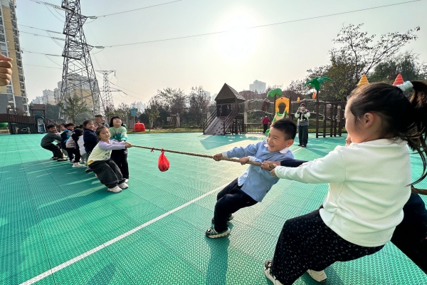 合肥市荣城幼儿园教育集团丽水分园:开展“快乐运动 畅享童年”主题活动2025年11月14日,合肥市荣城幼儿园教育集团丽水分园的户外活动场洋溢着欢声笑语,一场趣味体育活动精彩上演。小、中、大三个年级组依据幼儿年龄特点量身设计特色游戏,让孩子们在运动中释放活力,在协作中收获成长。 小班组的“小脚丫过小河”萌趣十足!热身音乐响起,小家伙们跟着老师甩甩胳膊、踢踢小腿,稚嫩的动作满是可爱。探索环节里,孩子们瞪着圆溜溜的大眼睛,小心翼翼地踏上“过河石”,有的小手紧紧扶住同伴,有的慢慢挪动脚步寻找平衡,脸上写满认真。正式游戏时,排着长队的萌娃们踩着“河石”稳步前行,偶尔踉跄一下便立刻站稳,有的坐进过河石上转圈圈,欢呼声、加油声在“小河”上空久久回荡,在趣味挑战中锻炼了平衡感与勇气。