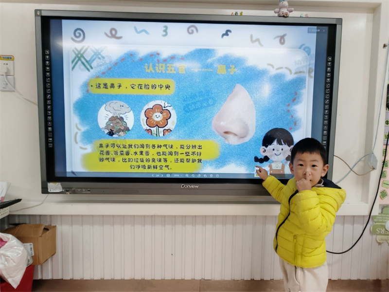 同时,小班教师精选色彩鲜艳、情节有趣的五官主题绘本,引导幼儿认识五官的位置和作用,“小耳朵能听见小鸟的歌声”“小眼睛能看到花朵的颜色”......孩子们听得认真,大胆表达自己的想法,不时伸出小手摸摸自己的五官,用动作来回应老师的问题。
