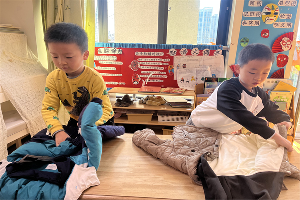 自立小主人:绽放自主光芒 孩子们化身“生活小能手”,自己叠衣物、整理个人物品,遇到问题不再依赖老师,而是尝试独立思考解决。从“老师帮我”到“我能自己来”,每一次尝试都见证着他们自主能力的提升,让独立成长的种子生根发芽。