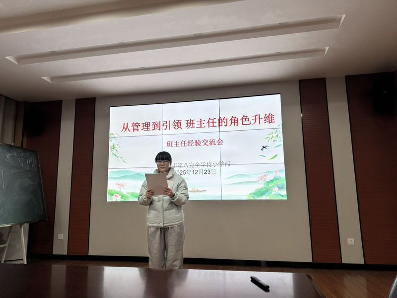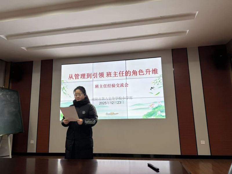 从管理到引领,班主任的角色升维——南阳市第八完全学校小学部举办班主任经验交流会为进一步夯实班主任队伍建设,提升德育工作专业化水平,精准把握新时代小学育人工作的核心要义,2025年12月23日,南阳市第八完全学校小学部以“从管理到引领:班主任的角色升维”为主题,成功举办班主任经验交流会。小学部领导班子成员、全体班主任齐聚一堂,共话育人初心,共探成长路径。 交流会现场氛围热烈而务实,议程紧凑且充实。会上,6位优秀班主任代表结合自身多年带班实践,以鲜活的教育案例、真挚的育人感悟,围绕“从传统管理者到成长引领者”的角色转变核心,分享了各自的教育智慧。来自三年级的李老师以“搭建心灵沟通桥梁”为主题,讲述了通过建立班级“悄悄话信箱”、开展一对一成长访谈等方式,走进学生内心世界,用温度化解成长困惑的实践历程;五年级的张老师则聚焦“激发学生内驱力”,分享了推行“班级小管家”自主管理模式、打造“成长积分银行”激励体系的经验,通过下放管理权限、明确成长目标,让学生从“被动遵守”转变为“主动担当”;低年级班主任代表王老师结合学段特点,分享了如何通过趣味化规则渗透、主题式班级活动,营造富有“灵气”与活力的班级文化,助力低年级学生养成良好行为习惯。 在交流研讨环节,班主任们踊跃发言、积极互动,围绕“如何平衡常规管理与精神引领”“不同学段学生引领策略差异”等实际问题展开深入探讨,现场思想碰撞不断,形成了诸多共识。随后,政教处董老师对本次交流会进行总结点评。他指出,新时代班主任工作既是“良心活”,更是“技术活”,传统的“保姆式”“命令式”管理已无法适应育人新需求,班主任必须主动实现角色升维,既要筑牢常规管理的“基石”,更要扛起精神引领的“重任”,以价值塑造为核心,以素养培育为目标,用专业智慧为学生成长赋能。同时,他对全体班主任提出期望,希望大家以此次交流会为契机,主动借鉴优秀经验,结合班级实际创新工作方法,努力成为学生健康成长的陪伴者、引导者与赋能者。