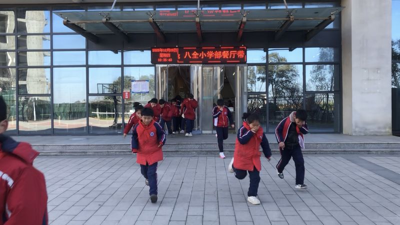 以练筑防,安全“童”行——八全小学部开展消防安全演练活动为切实增强全体师生的消防安全防范意识和应急处置能力,筑牢校园安全防线,12月25日上午,八全小学部以“实战化”标准在食堂区域组织开展了一场紧张有序的消防安全演练活动,让安全理念深植师生心中。 演练正式启动前,各班级班主任及相关教职工提前做好充分筹备。老师们结合小学生的认知特点,通过生动的案例讲解、直观的动作示范,向学生们系统普及了火灾发生时的逃生注意事项、湿毛巾捂口鼻的正确方法、弯腰低姿前行的防护要点,同时清晰明确了本次演练的逃生路线、集合地点及各环节安全规范,确保每位学生都能听懂、记牢、会用。 “呜——呜——”上午9时许,急促的消防警报声准时响彻校园。听到警报后,演练迅速进入实战环节。在老师们的沉着引导下,学生们立即拿出提前准备好的湿毛巾捂住口鼻,弯腰屈膝,沿着预设的安全通道快速有序地向指定集合点撤离。过程中,学生们严格遵守逃生纪律,不推挤、不慌张,脚步轻快却秩序井然。短短几分钟内,全体师生便安全撤离至空旷地带,各班级迅速清点人数并上报,整个演练流程规范、衔接顺畅,达到了预期效果。