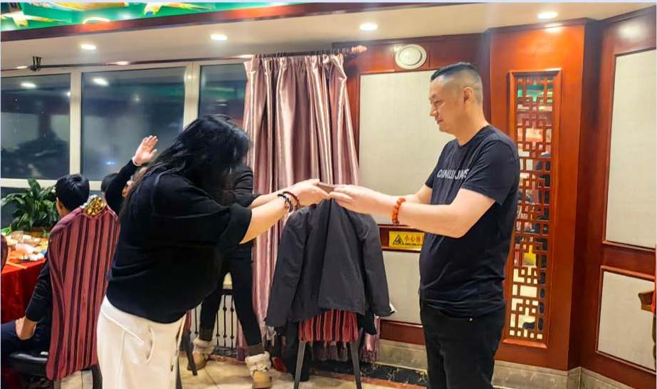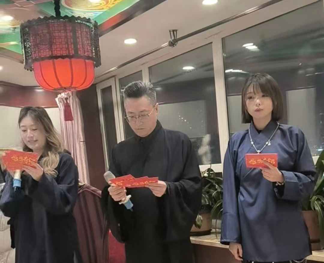 下午五点整,聚会正式开场。现场布置古朴典雅,处处彰显道家文化的深厚底蕴。红绸随风飘扬,似在诉说着古老的故事;香炉中香烟袅袅,营造出超凡脱俗的仙境氛围。来自五湖四海的同门道友、师兄师姐们齐聚一堂,尽管他们身处天涯海角,此刻却怀着对道法的热爱和对同门的深情,跨越千山万水,相聚在这冰城哈尔滨。