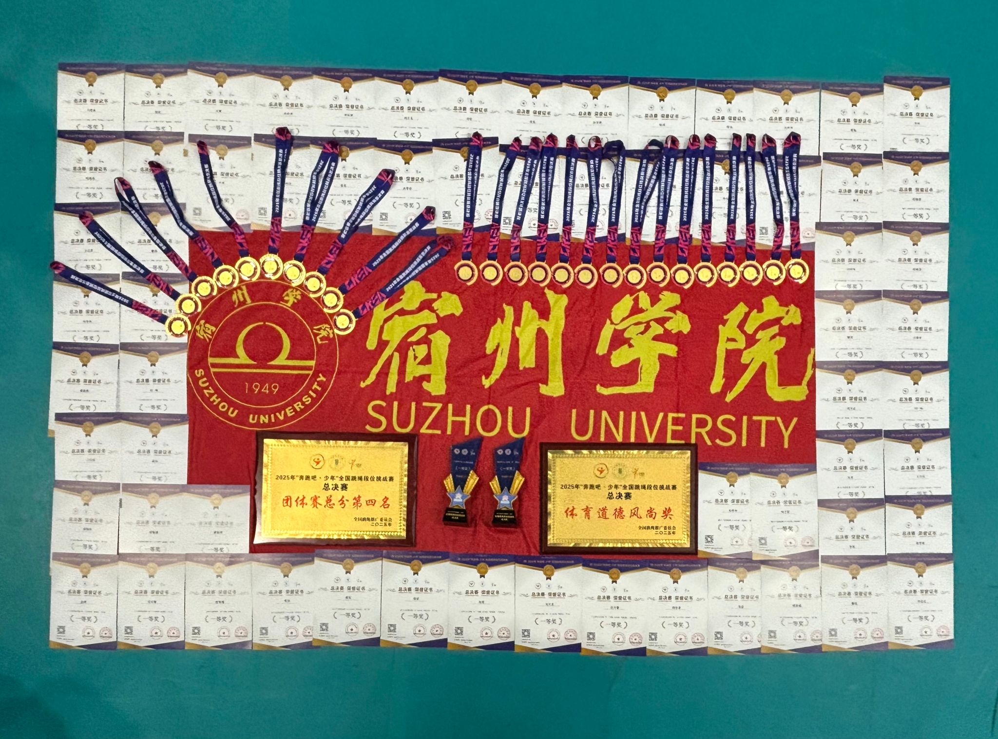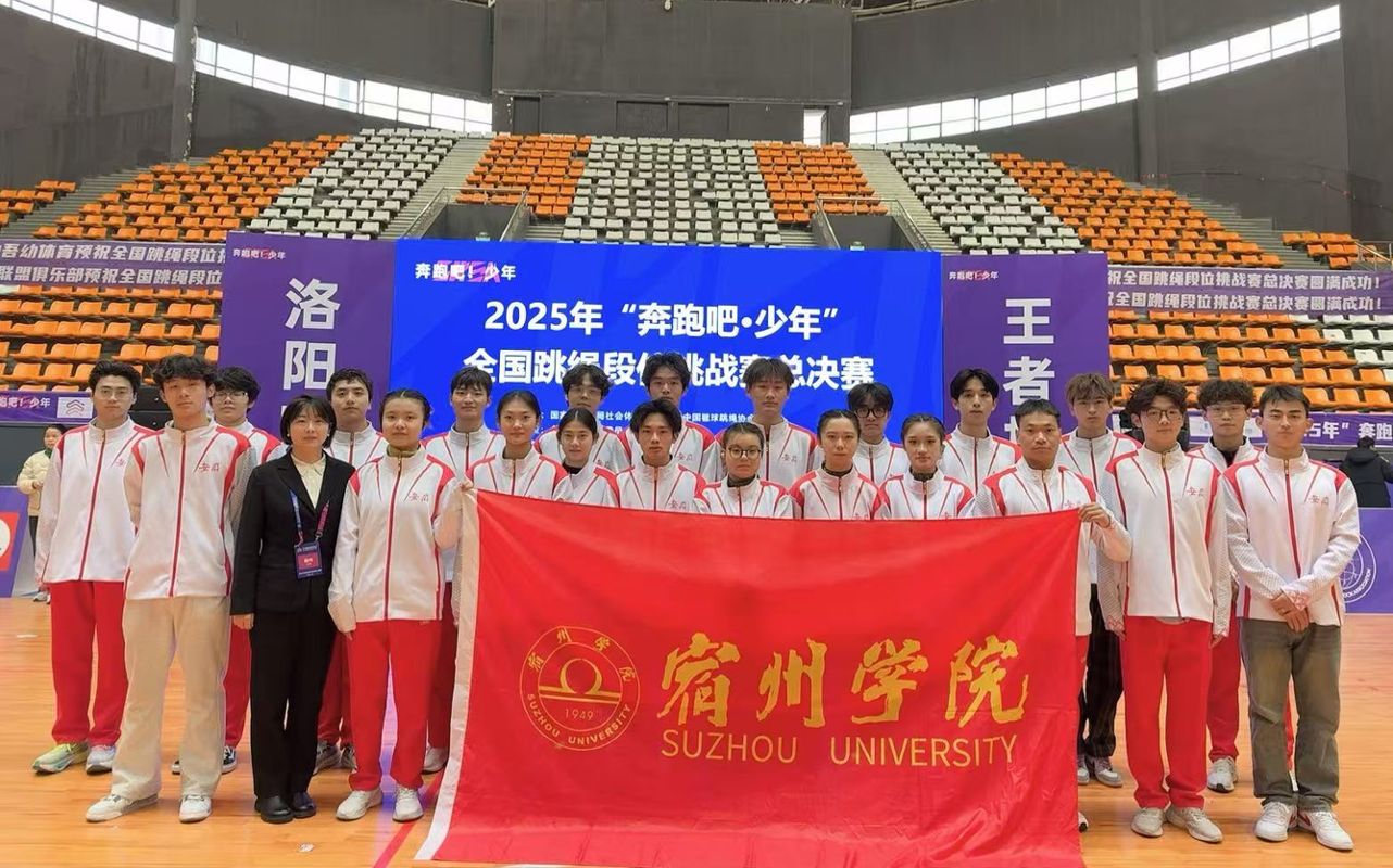宿州学院跳绳队在2025年“奔跑吧·少年”全国跳绳段位挑战赛总决赛中获得佳绩近日,由国家体育总局社会体育指导中心、中国毽球跳绳协会主办的2025年“奔跑吧·少年”全国跳绳段位挑战赛总决赛在河南洛阳燃情开赛,我校代表队取得第一名17项、第二名9项、第三名13项及团体总分第四名的优异成绩。