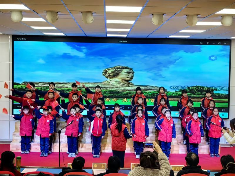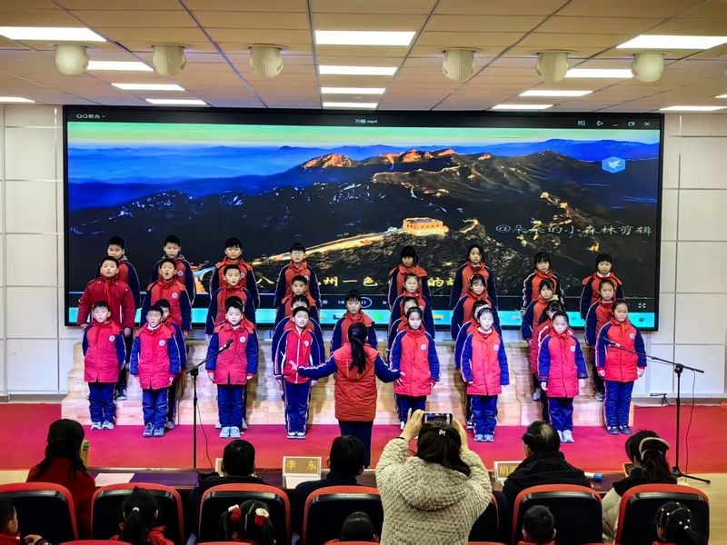 伴随着悠扬的前奏,比赛在全体班级共同演绎的经典曲目《万疆》中正式拉开帷幕。孩子们身姿挺拔地伫立舞台,整齐的服装与专注的神情尽显少年风采。当“红日升在东方,其大道满霞光”的歌词响起,清脆悦耳的歌声便如清泉般流淌全场,将对祖国山河的眷恋、对民族精神的尊崇融入每一个跳动的音符。悠扬的旋律与深情的演绎相得益彰,仿佛一幅山河壮阔的画卷在观众眼前徐徐铺展,浓浓的爱国情愫在报告厅内久久回荡,让在场每一位观众都深深沉浸其中。 开场过后,各班依次登台献艺,自选曲目风格迥异、亮点纷呈,将比赛气氛推向一个又一个高潮。低年级班级带来的《红红的太阳》充满童真活力,孩子们挥舞着手中的小红旗,用欢快的节奏、灿烂的笑容和灵动的肢体动作,展现出如朝阳初升般的蓬勃朝气,歌声里满是对美好生活的热切向往;中高年级班级演绎的《奇迹再现》则励志激昂,演唱者们眼神坚定、声线铿锵,每一句演唱都饱含力量,将面对困难勇往直前、追逐梦想永不言弃的精神诠释得淋漓尽致,引得台下阵阵欢呼;还有班级选择了《我和我的祖国》《歌唱祖国》等经典爱国曲目,用真挚的情感传递对祖******亲的深深祝福,让爱国主义精神在歌声中代代传承。