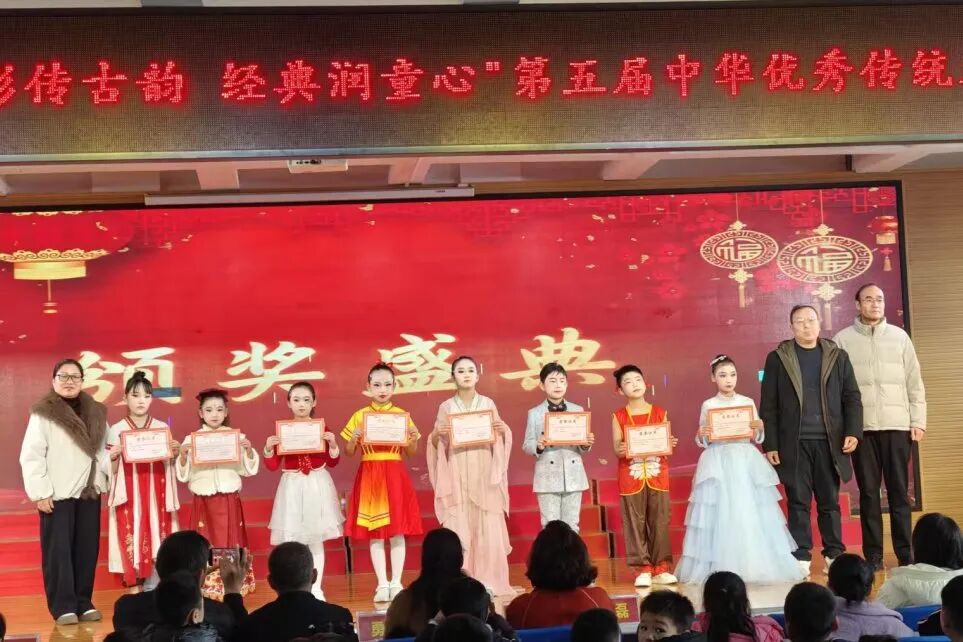 荣耀时刻 颁奖台上,星光闪耀。在热烈的掌声中,我校中华优秀传统文化比赛颁奖仪式启幕。获奖班级学生代表依次登台,接过属于自己的荣耀。愿这小小的奖状,化作源源不断的动力,让中华优秀传统文化在童心之中代代相传。