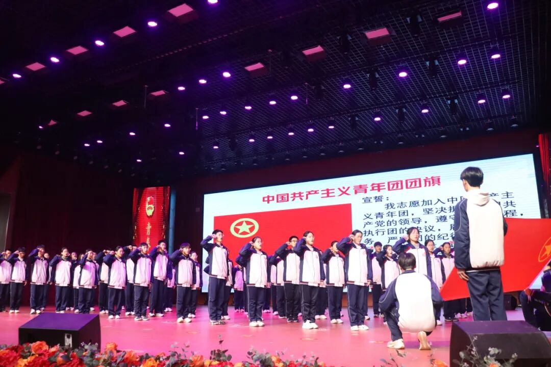 “我志愿加入中国共产主义青年团,坚决拥护中国共产党的领导……”在政教主任邓志帅的带领下,新团员们面向团旗,用最洪亮的声音庄严宣誓,铿锵有力的誓言代表着团员的荣誉与责任。