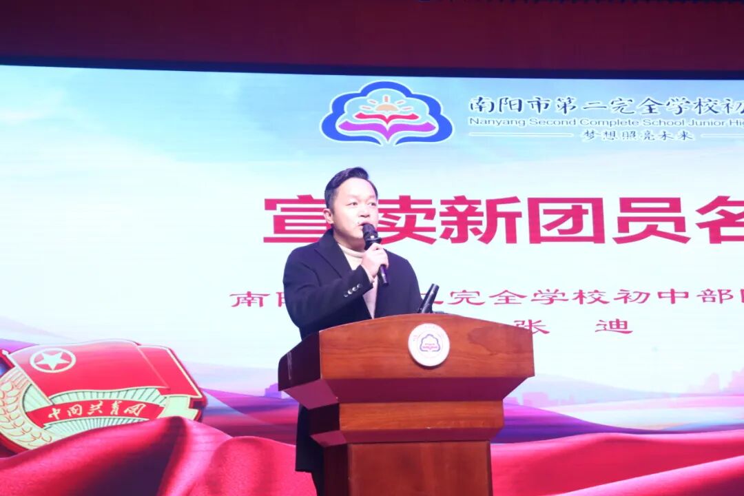 校团委书记张迪老师宣读了新团员名单。当一个个名字被念出,新团员们脸上洋溢着自豪与激动。