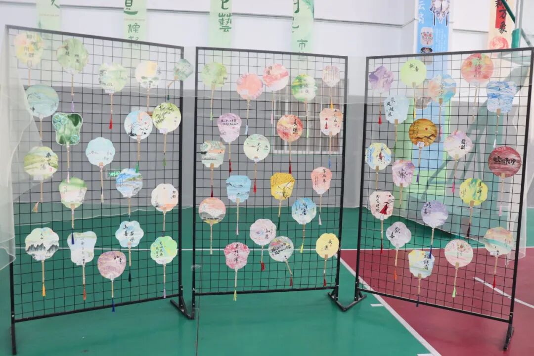 圆圆的、方方的扇面上,孩子们画出江南水乡、花鸟鱼虫,还有可爱的卡通形象,小小扇面,装下了大大的美好世界。