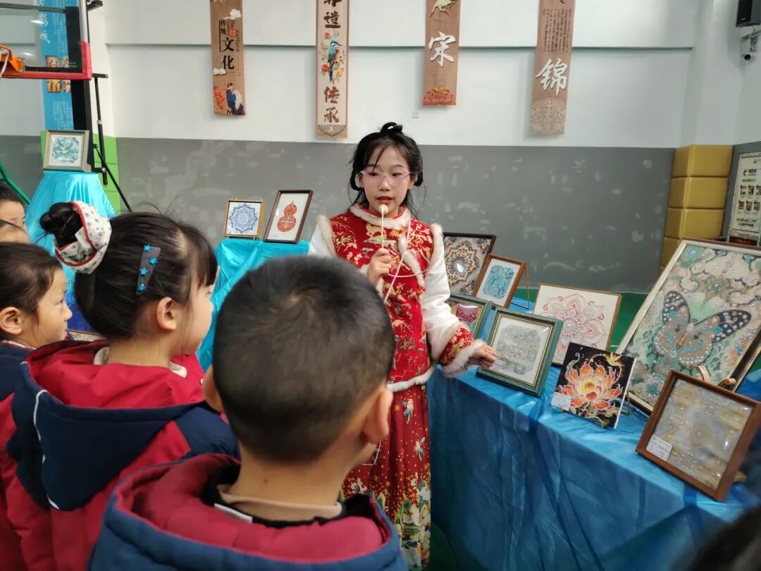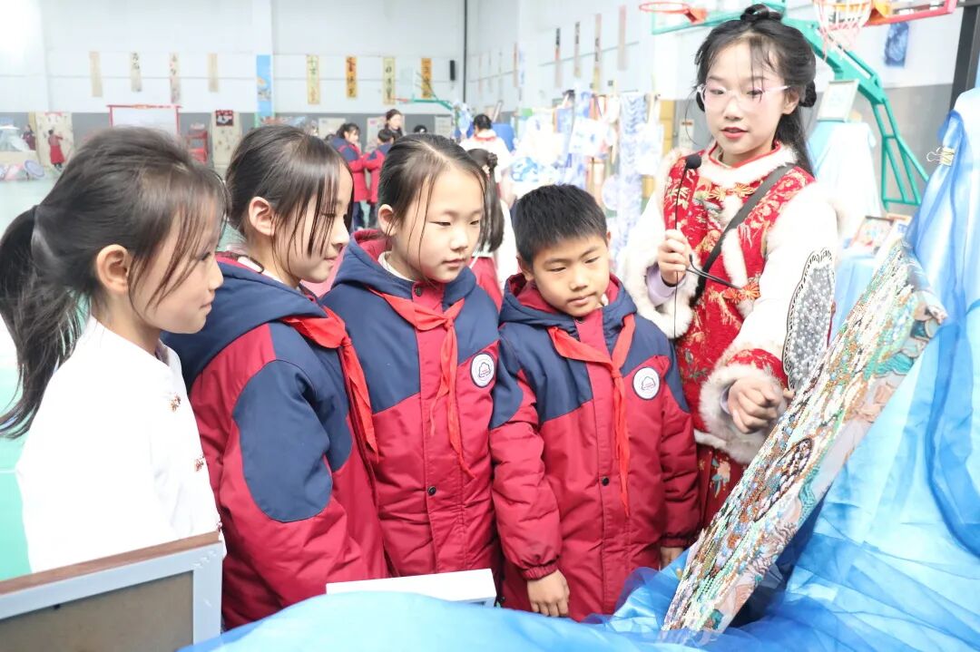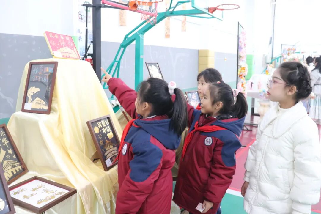 小学|以美育人润童心 童艺筑梦贺新年——南阳市第二完全学校小学部第二届美育成果展(二)为深入落实教育部《关于全面实施学校美育浸润行动的通知》要求,推进“五育并举”教育理念落地,让非遗文化的魅力扎根童心,在元旦佳节来临之际,南阳市第二完全学校小学部举办“以美育人润童心,童艺筑梦贺新年”迎元旦第二届美育成果静态作品展。 宛城区教体局体卫艺股股长马立晓,校外教育培训监管股股长王纬经,南阳市第二完全学校小学部教育集团成员校、领导班子成员在小小讲解员们的介绍中,参观了美育成果展的各个展区,并对此次美育成果静态展给予了高度赞誉。