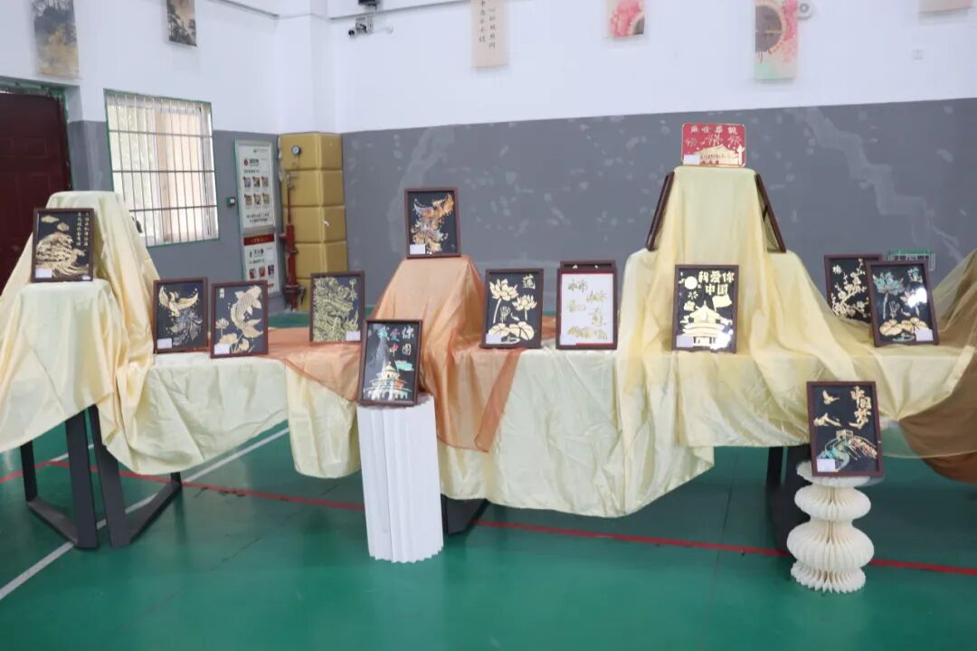 金箔在画纸上闪闪发亮,孩子们用金箔贴出花鸟、山水、新年福字,每一幅金箔画都金灿灿的,像藏着好多小太阳。 铜 鼓