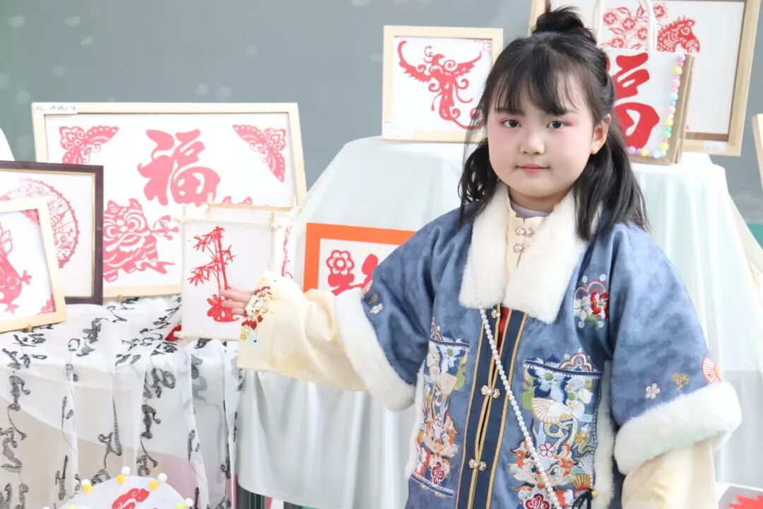 各式各样的纸鸢挂在展区,蝴蝶形、燕子形、龙形······孩子们还给纸鸢画上自己的梦想,好像一松手,纸鸢就能带着梦想飞向蓝天。 剪 纸