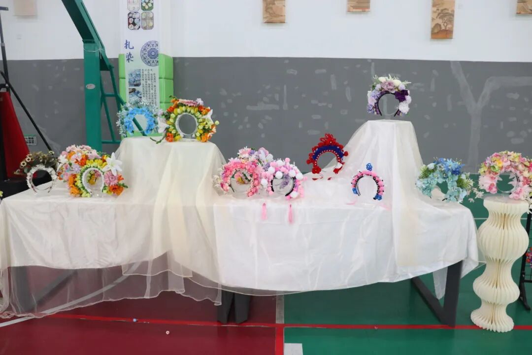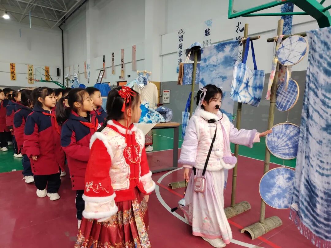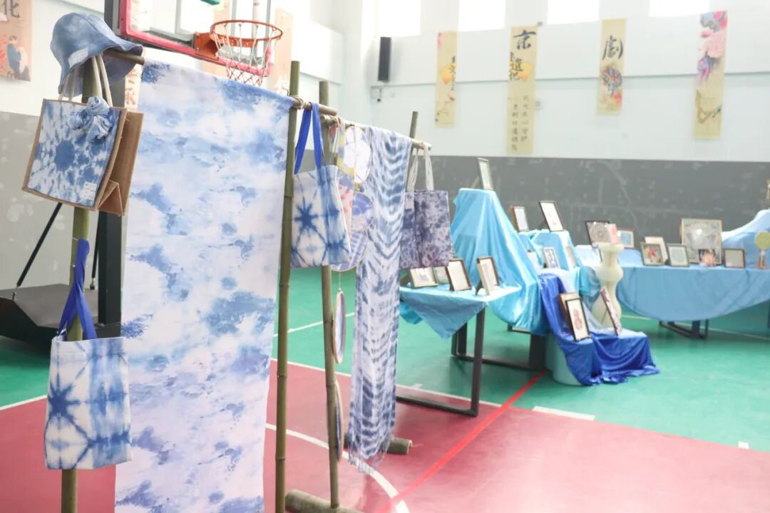 非遗薪火传童趣 本次展览深度融入学校“梦想+”生涯教育课程,聚焦非遗文化,设置扎染、簪花、脸谱、竹编、皮影等十六个特色展区,件件作品皆出自孩子们之手,他们化身非遗传承人以稚嫩的双手勾勒非遗轮廓,用灵动的创意赋予传统新生,让千年非遗在校园里绽放出别样的童真光彩。 扎 染
