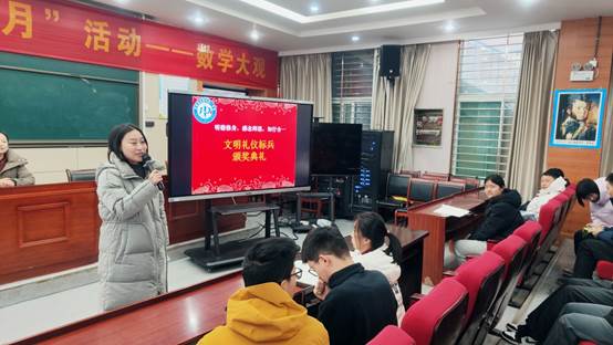 接下来年级副主任张莉,公布了各班评选出的“文明礼仪标兵”名单,年级领导为获奖同学颁发荣誉证书和定制文创奖品。这些同学在校园生活中展现了良好的文明素养和行为规范。