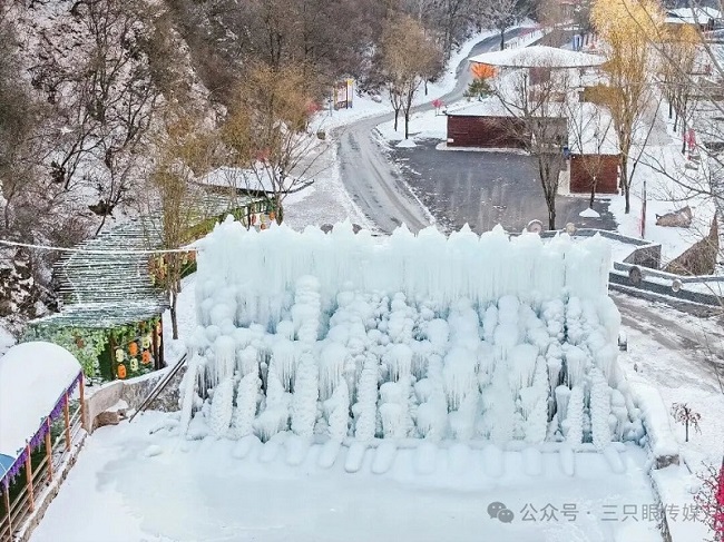 刚踏入景区就被震撼到失语——数里冰挂蜿蜒崖壁,巨型冰瀑从山顶倾泻而下,阳光下折射出七彩光泽,宛如大自然亲手雕琢的冰雪艺术品。顺着冰瀑往里走,脚下的溪流正是春秋晋水的源头,当年晋国国君姬燮在此建下行宫,将“唐”改名为“晋”,大晋堂、小晋堂的古村名便源于这段佳话 。文友们纷纷惊叹,指尖触到的不仅是冰凉的冰雕,更是流淌三千年的古晋历史。