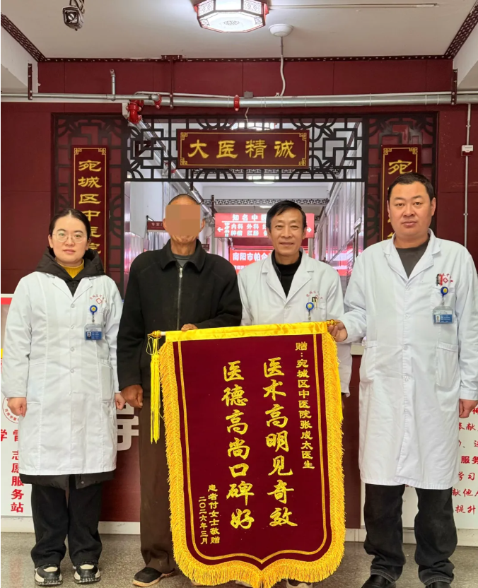 这是继肝癌患者宋女士之后,又一位患者为张成太院长送来锦旗。一面面锦旗的背后,是患者对中医药疗效的认可,也是张院长几十年如一日坚守临床、服务患者的真实写照。 宛城区中医院将继续发挥中医药特色优势,以精湛的医术和温暖的服务,守护更多患者的健康与希望。 编辑| 薛 晶 |
