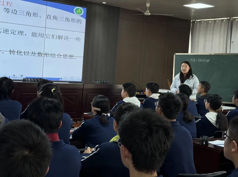评课赋能 以研促教 活动现场,闫宏涛老师对岳增幽、吕学明两位老师的复习示范课予以高度评价。两节示范课彰显扎实教功与专业素养,坚持以生为本、因材施教,巧妙融合信息技术与大单元教学理念,通过变式训练有效激活学生思维。课堂聚焦等腰、等边及直角三角形核心知识,以思维导图为抓手,引导学生自主构建知识体系,厘清性质、判定与易错点。教学主线紧扣中考真题与变式训练,采用问题驱动、小组合作模式,攻坚分类讨论、勾股定理应用等高频考点,由浅入深拆解难点。师生互动高效,学生踊跃展示,既夯实了知识基础,更提升了几何推理与规范答题能力,为全校一轮复习课树立了可复制、可推广的标杆。