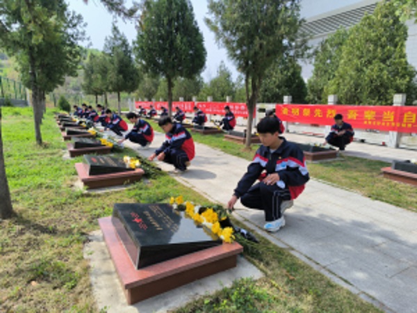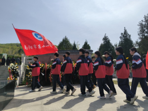 缅怀革命先烈 传承红色基因——南阳市十一中举行清明祭英烈主题教育活动清明时节寄哀思,缅怀先烈砺初心。为深入开展爱国主义教育,传承红色基因,引导广大青少年铭记历史、珍爱和平、立志成才,4月3日,南阳市第十一中学组织部分党员教师、团员及学生代表,前往南阳市烈士陵园开展“清明祭英烈”主题祭扫活动。