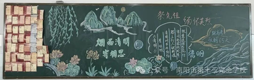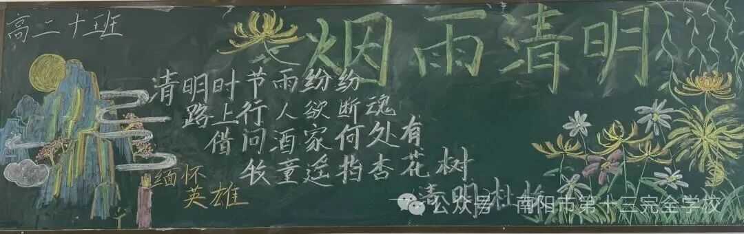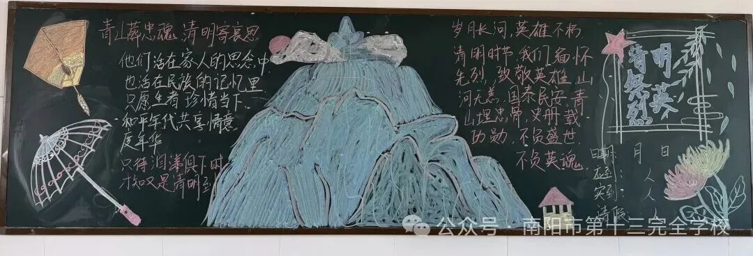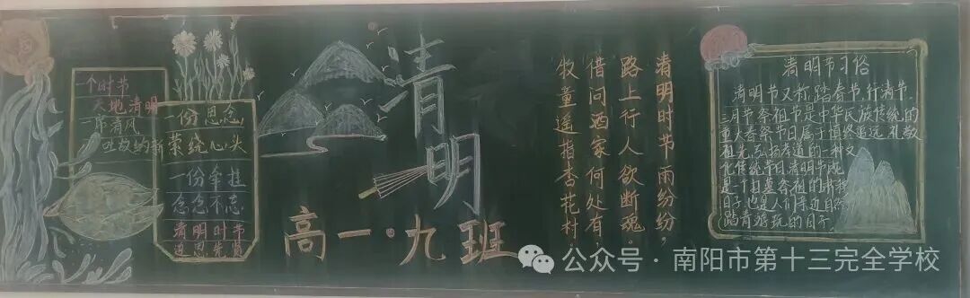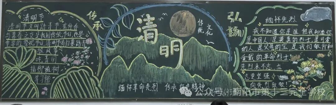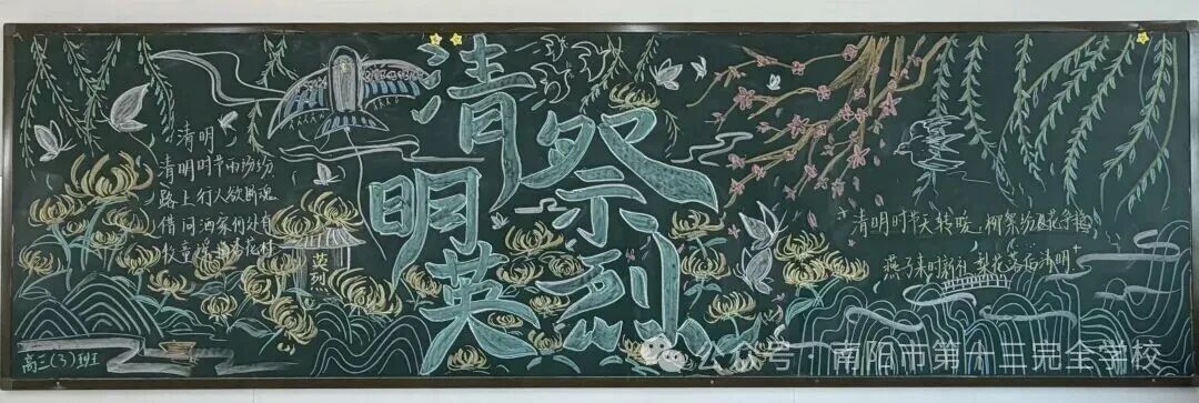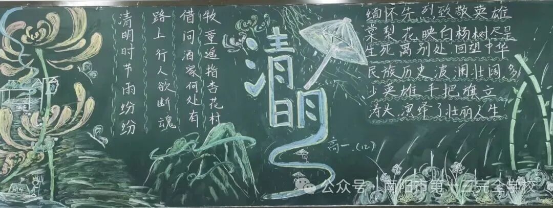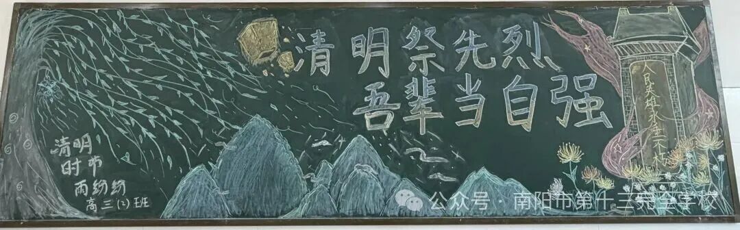 PART.02 主题黑板报:笔墨抒怀 传承精神 此前,学校面向高一、高二、高三三个年级,开展清明祭英烈主题黑板报创作活动。同学们精心构思、用心绘制,以笔墨为载体,以板报为阵地,将英烈事迹、红色精神、清明哀思融入其中。一幅幅主题鲜明、内容丰富、设计精美的黑板报,成为校园里传承红色文化、缅怀革命先烈的生动窗口,营造了崇尚英烈、缅怀英烈、学习英烈的浓厚氛围。 高一年级优秀黑板报展示