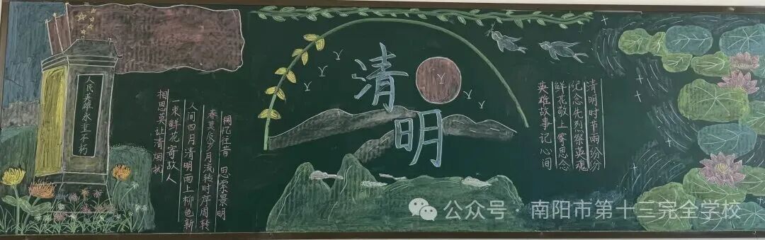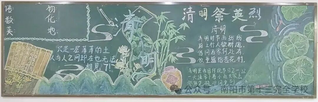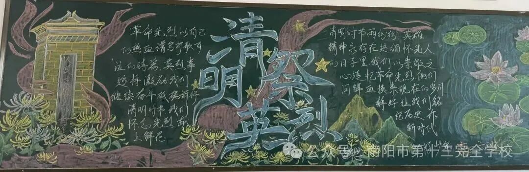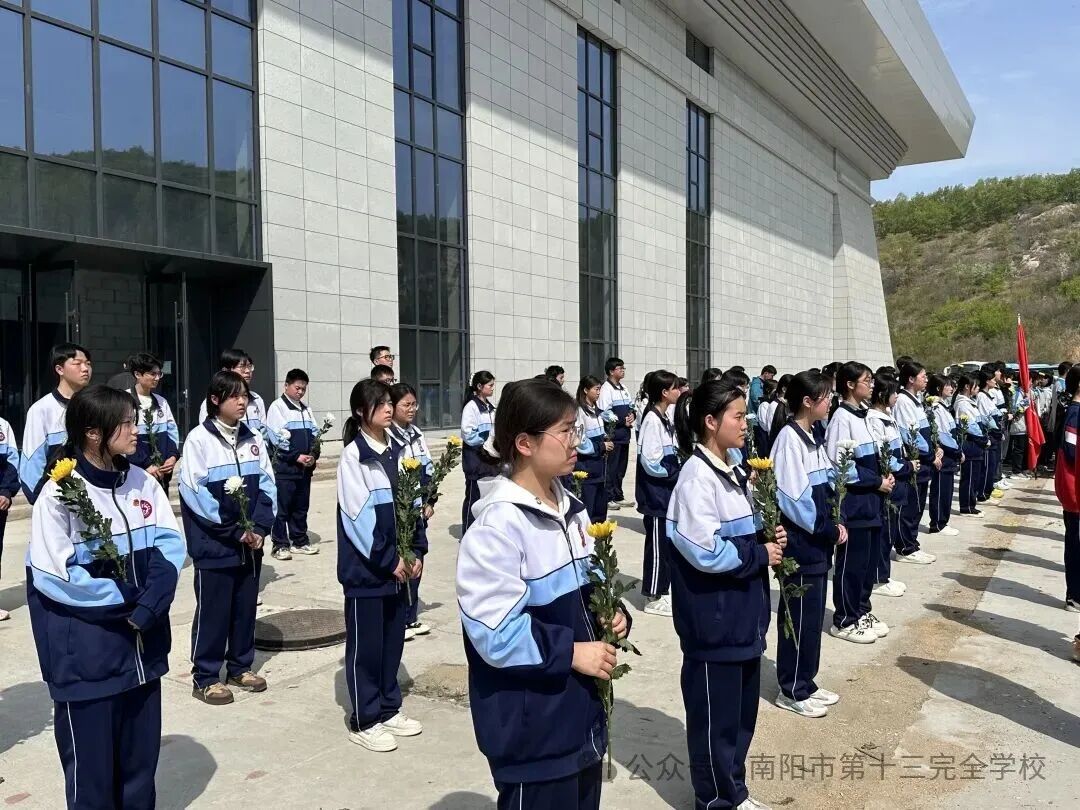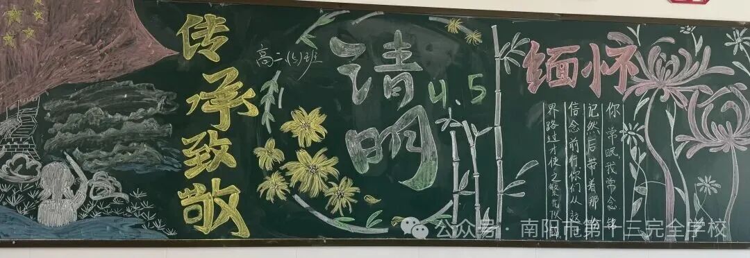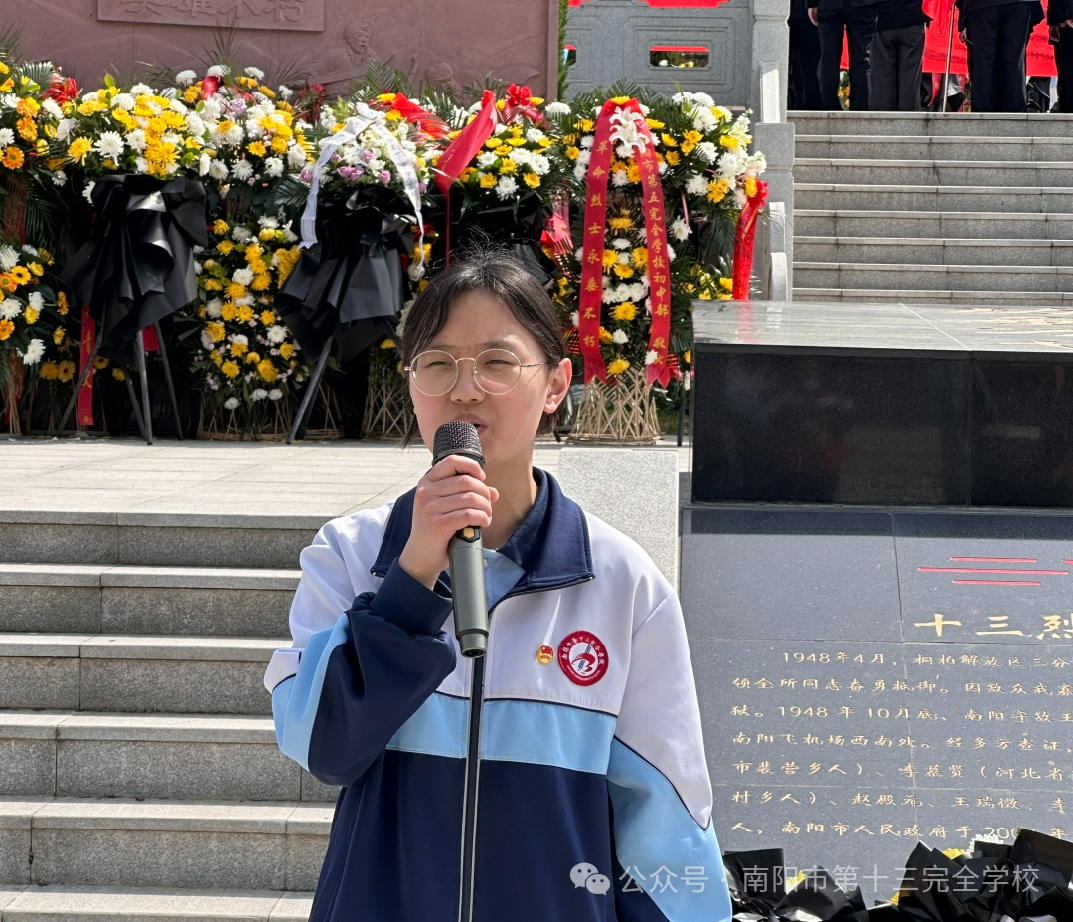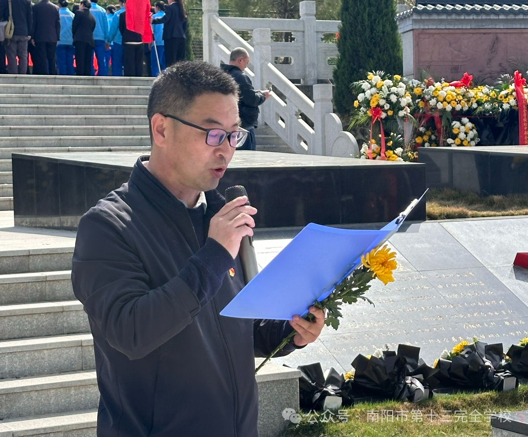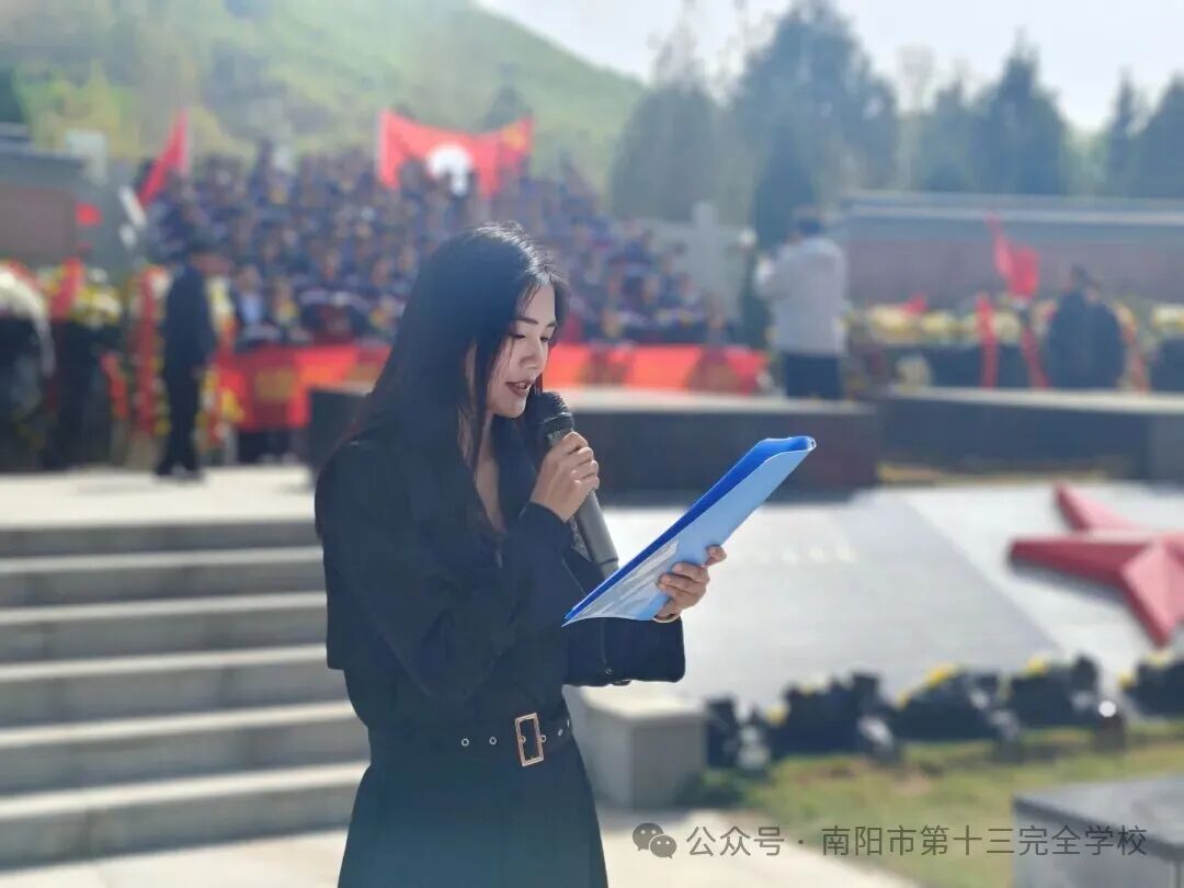 南阳市第十三完全学校高中部清明主题教育活动春风送缅,松柏含哀;缅怀先烈,矢志传承。为深切缅怀革命先烈的丰功伟绩,传承红色精神,厚植师生爱国情怀,南阳市第十三完全学校高中部开展清明祭英烈主题教育活动,通过烈士陵园祭扫、主题黑板报创作两大形式,让红色基因根植心底,让英烈精神代代相传。 烈士陵园祭扫:缅怀忠魂 砥砺初心