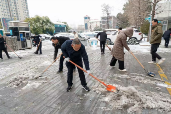 雪覆泉城添盛景,实干担当暖寒冬。在济南迎来今冬第二场降雪后,城市银装素裹的同时,路面积雪结冰也给周边居民出行带来诸多不便。1月19日周一,司氏集团董事长司加豪先生率先垂范,带领集团党员干部以雪为令、闻雪而动,开展集体扫雪除冰志愿服务活动,用实际行动践行企业社会责任,为附近居民开辟出安全畅通的“暖心路”。当日一早,集团周边路段被厚厚的积雪覆盖,寒风裹挟着残雪更添寒意。司加豪董事长身着御寒衣物,手持铁锹率先投身扫雪队伍,以“头雁效应”带动集团党员迅速集结。大家纷纷拿起铁锹、扫帚、推雪板等工具,自发分成多