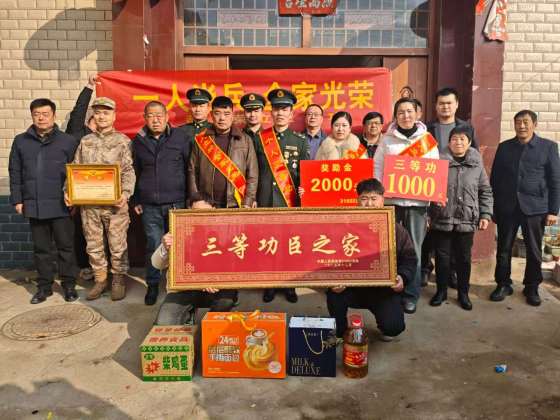 新春将至,捷报频传。为切实增强军人军属荣誉感和获得感,营造“一人立功、全家光荣、全社会尊崇”的浓厚氛围,近日,卧龙区退役军人事务局、区人武部、部队代表及潦河镇组成联合慰问组,专程前往现役军人刘佩鑫家中,隆重举行个人三等功喜报送达仪式,将这份沉甸甸的荣誉与党和政府的关怀精准送到军属心间,让“一人立功、全家光荣”的暖流浸润邻里街巷。慰问现场,锣鼓喧天、红幅招展,喜庆的氛围感染着每一位在场人员。慰问组一行手捧鲜红的喜报,怀着崇敬的心情来到立功军人家中,郑重为军属佩戴“一人立功全家光荣”荣誉绶带,将满载