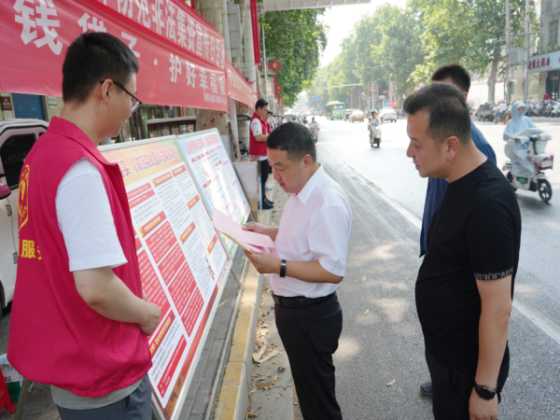 6月15日,南阳市宛城区组织开展“守住钱袋子·护好幸福家”为主题的防范非法集资宣传日活动,引导大家主动远离非法集资,共同守护美好生活。副区长韩学军参加。活动现场,通过摆放宣传展板、发放宣传资料、解答现场咨询等多种方式宣传什么是非法集资、非法集资的关键特点、表现形式以及危害,还有避免参与非法集资并保护自己不受损失的措施,以增强人民群众对非法集资等非法金融活动的防范意识和识别能力,引导群众自觉抵制非法集资,积极支持打击非法集资。韩学军一行认真观看展板并听取讲解,他指出,此次防范非法集资宣传活动就是要通过