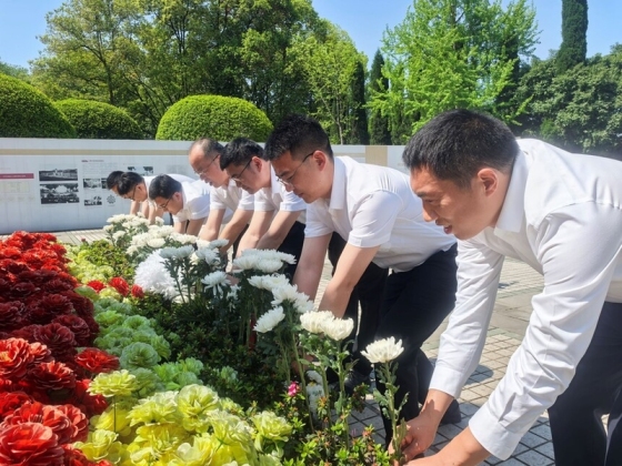 春和景明寄哀思,缅怀先烈守初心。为深入传承红色基因,弘扬革命先辈精神,4月4日,北新融建公司双钱项目联合党支部赴聂荣臻元帅陈列馆开展“学先辈、强党性、树政绩、促建设”主题红色教育活动,以实地教学感悟聂帅光辉一生,接受深刻的党性洗礼和精神淬炼。活动在庄严肃穆的聂荣臻元帅铜像广场拉开序幕。全体人员面向聂荣臻元帅铜像肃立致敬,行注目礼,党支部书记带领全体党员举起右拳,面向鲜红的党旗重温入党誓词,“我志愿加入中国******党,拥护党的纲领,遵守党的章程……”铿锵有力的誓言回荡在铜像广场上空,既是对入党初心的回