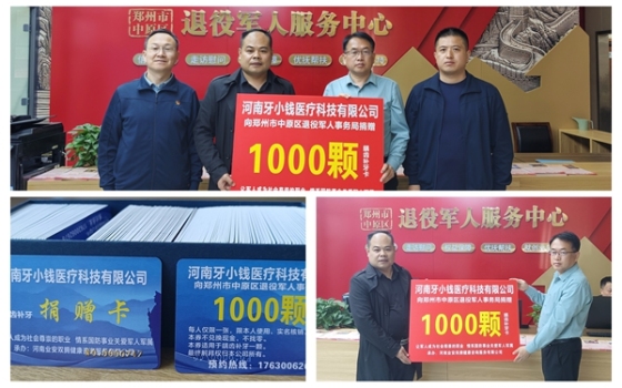 谷雨时节,万物逢时。在这春意盎然的美好日子里,郑州市中原区退役军人事务局内涌动着一股暖流。为深入贯彻“让军人成为全社会尊崇的职业”这一时代号召,广泛动员社会力量参与拥军优属工作,一场以“情系国防事业,关爱军人军属”为主题的口腔健康公益捐赠仪式在此温情举行。4月20日,河南牙小钱医疗科技有限公司携旗下优质医疗资源,向中原区退役军人事务局定向捐赠1000颗“龋齿补牙卡”,用实际行动为退役军人的口腔健康保驾护航。中原区退役军人事务局李泽强代表该局接受捐赠,并对爱心企业的善举表示衷心感谢。河南牙小钱医疗科技有限