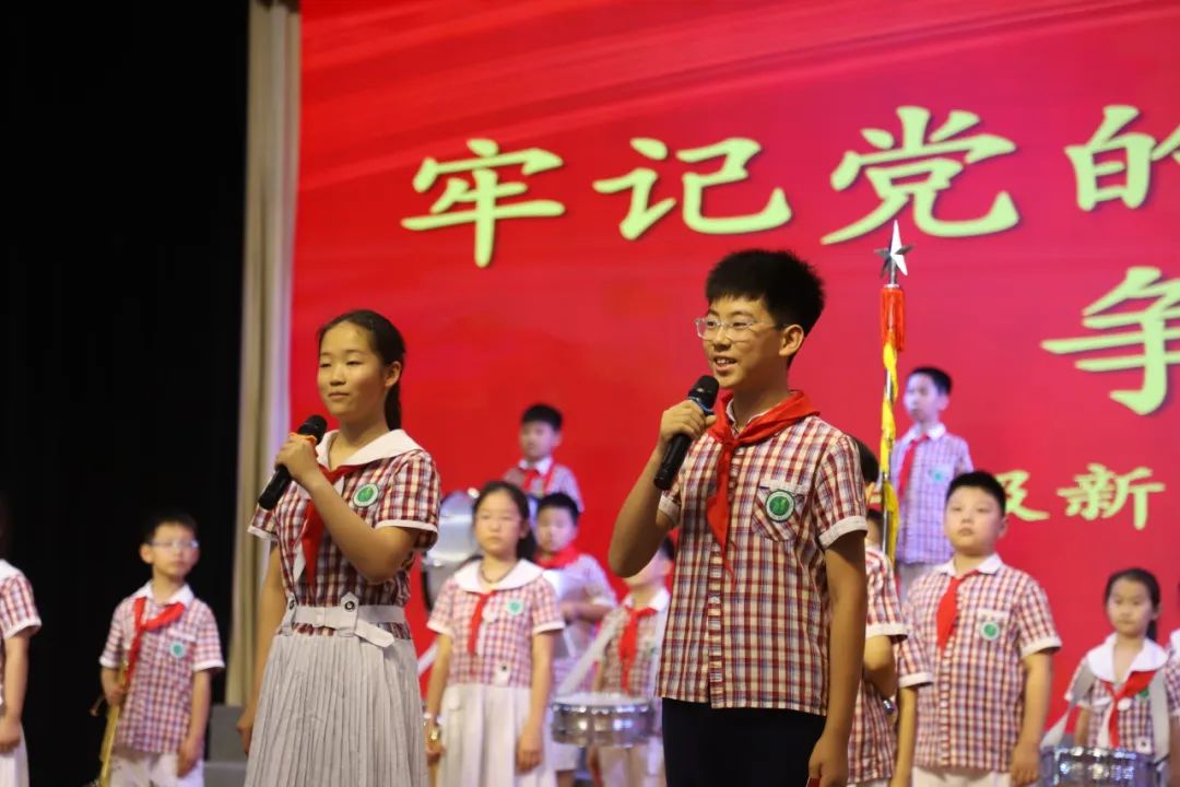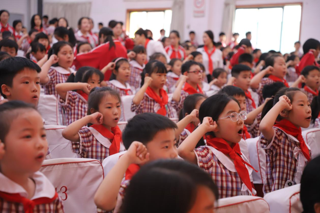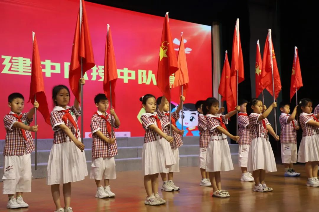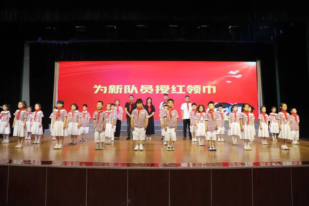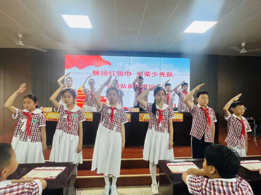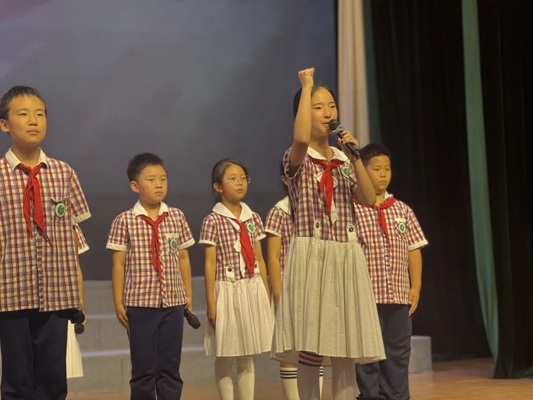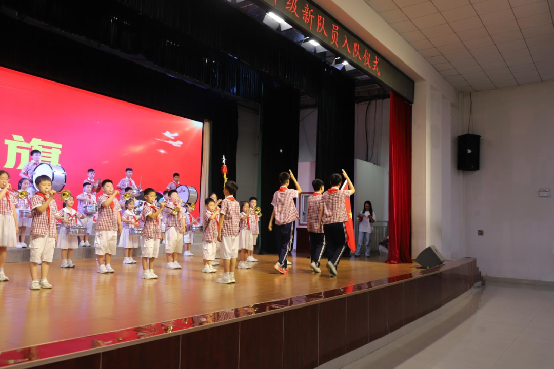 在雄壮的少先队出旗曲中,鲜艳的队旗迎风入场,全体肃立,目光如炬。激昂的队歌声中,新老队员以铿锵誓言,诠释对红领巾的赤诚信仰。