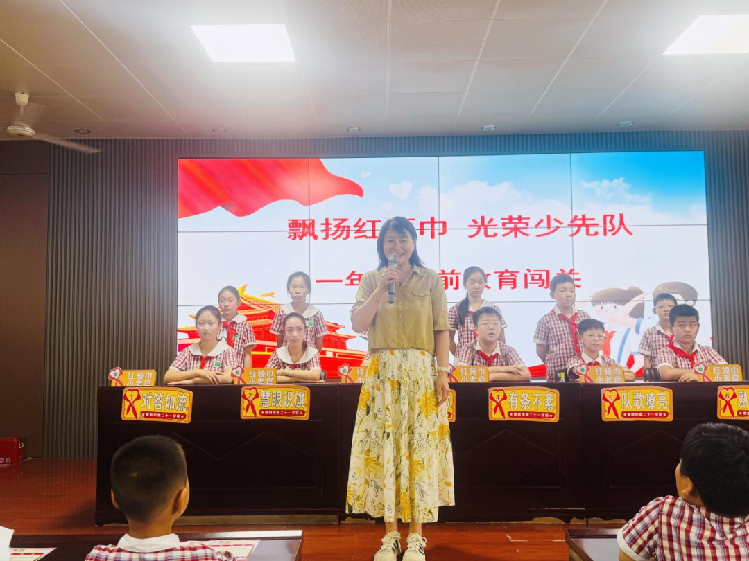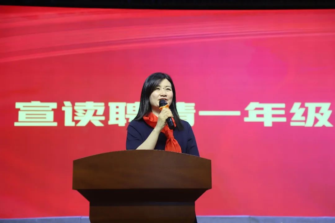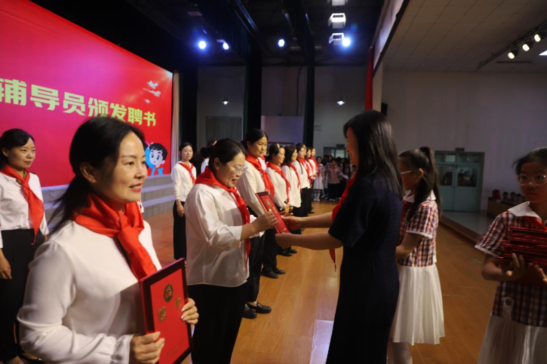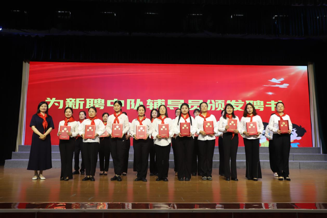 二十面中队旗庄严交接,红色基因薪火相传;张瑛校长郑重授聘,教育使命同心共担。红领巾与星火旗帜交相辉映,照亮新时代少年先锋的成长征程。