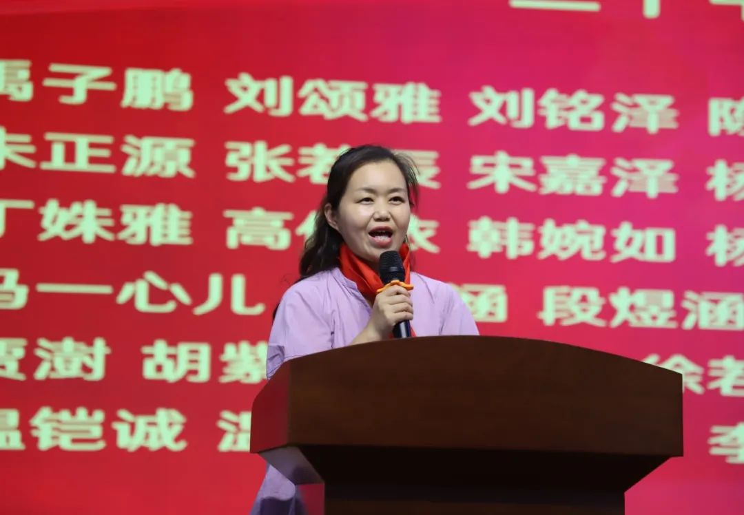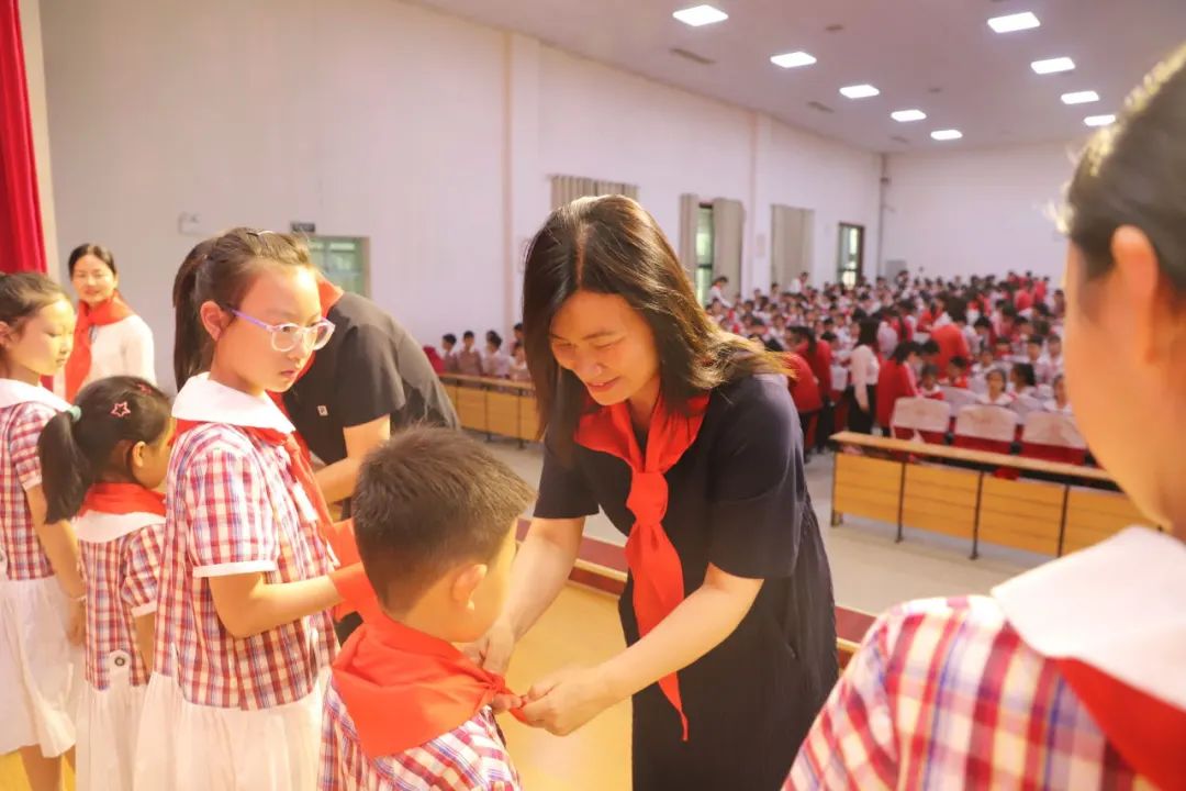 张瑛校长向新入队的少先队员致以祝贺,并勉励大家要以红领巾为荣,在队组织中淬炼成长,争做搏击风雨之雄鹰,为鲜艳的红领巾增光添彩!