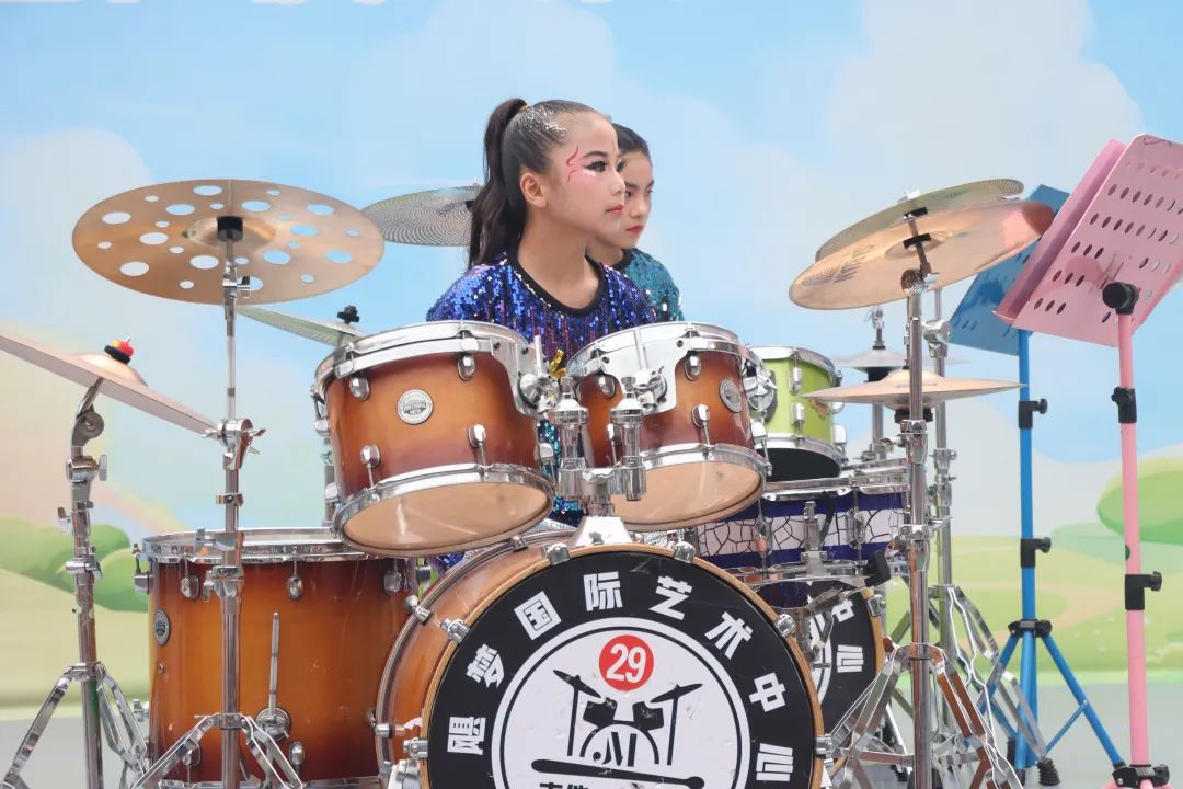 架子鼓表演《鼓舞中国》《逆战》则点燃全场激情,强劲的鼓点奏响了青春活力与自信宣言。