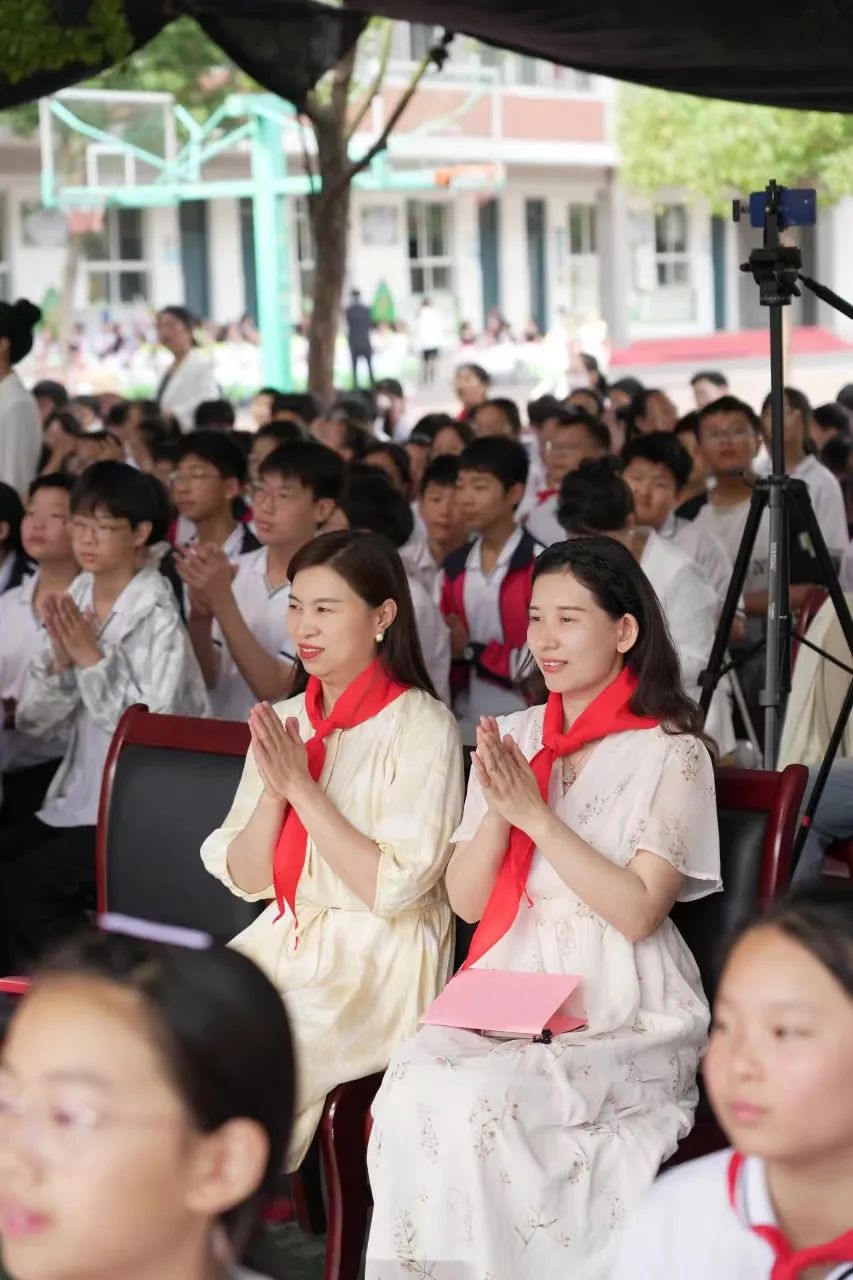 随后的一年级新生入队仪式庄重而温馨,新队员们佩戴上鲜艳的红领巾,稚嫩的脸庞写满自豪,象征着星星火炬代代相传。