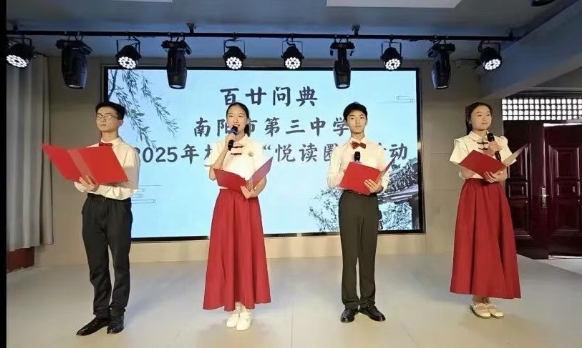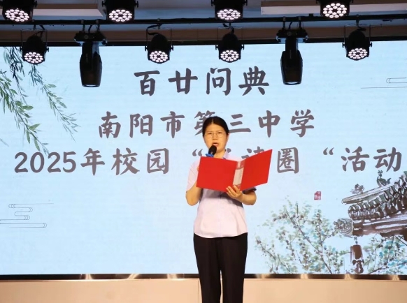 5 月 30 日,南阳市第三中学以 “百廿问典” 为脉络,打造 “2025 年校园‘悦读圈’” 主题活动。全校师生通过诗朗诵、情景剧、乐器伴舞等多元形式,共赴一场经典与青春的文化之约。活动由 2023 级李泊龙、宋梓源等同学主持,以创新表达诠释阅读力量,为书香校园建设注入新活力。