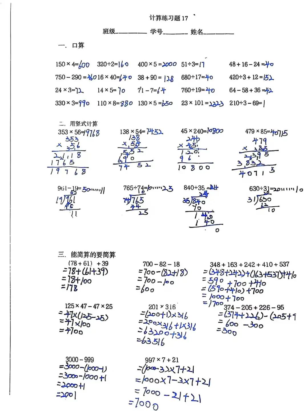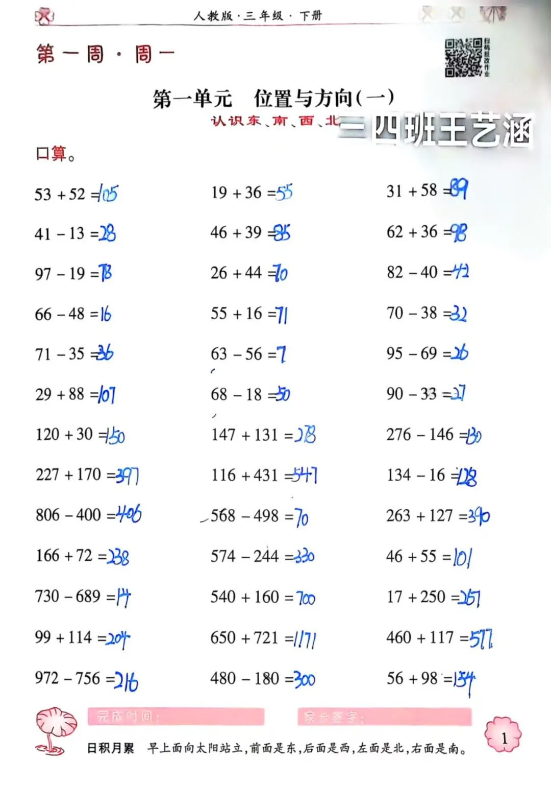 一加一减从心来,一乘一除出智慧。数学是思维的体操,而计算则是它的具体表现。计算能力的养成贵在坚持。暑假里孩子们也坚持每天练习,勤学多练,方可熟能生巧,持之以恒,才可越走越远。