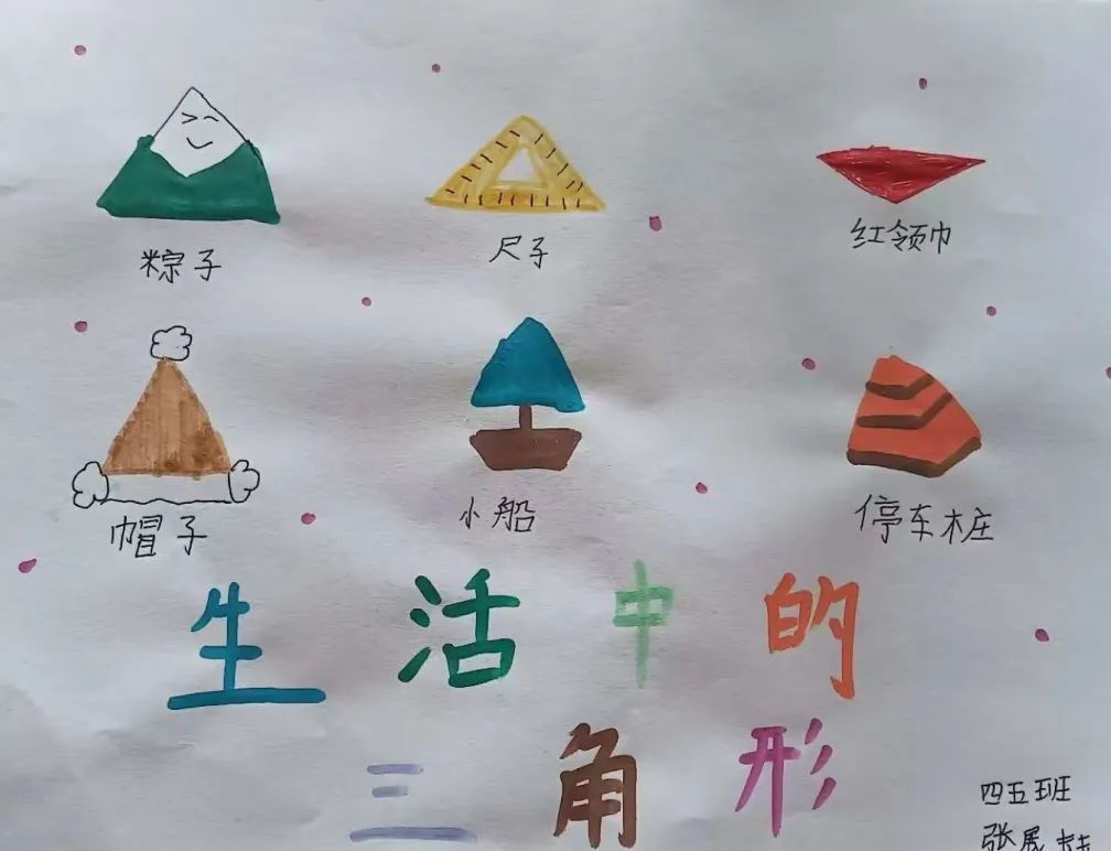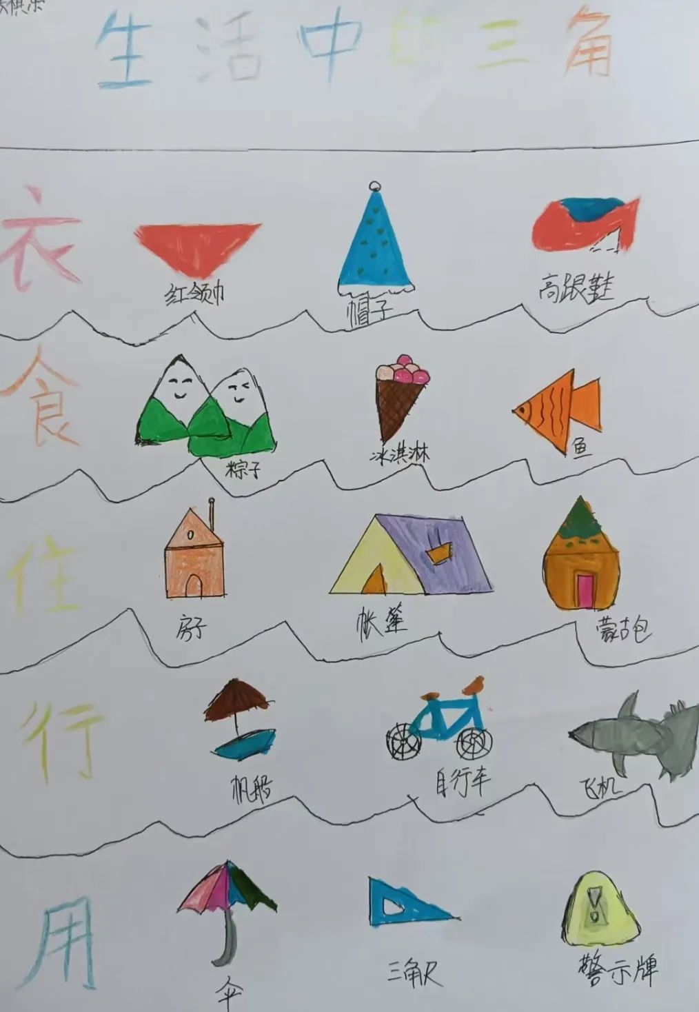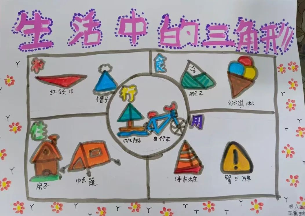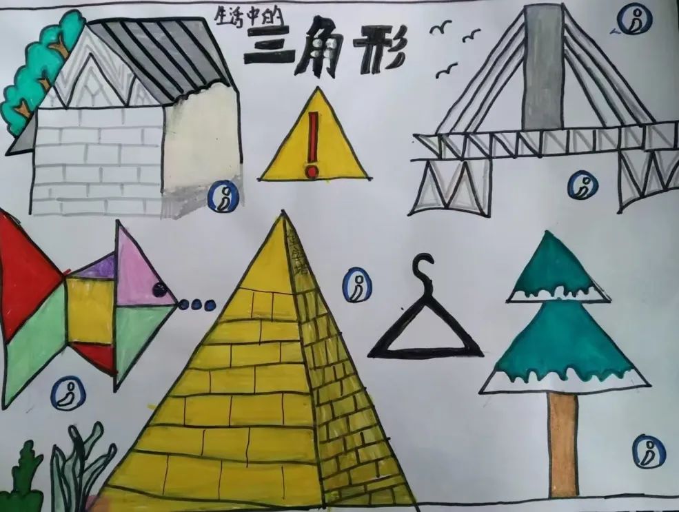 观察中发现,笔尖下创造,实践中领悟。暑假实践作业探索之旅中,孩子们充分发挥主动性,将数学知识运用到实际生活中,不仅感受到动手的快乐,也体验到成功的满足,同时理论与实践相结合,加深了对轴对称图形和三角形的认识,感悟数学美,体会数学的魅力。